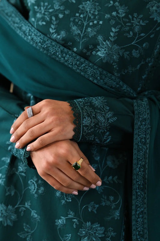 JADE-3PC LAWN CHIKANKARI EMBROIDERED SHIRT WITH CHIFFON PRINTED DUPATTA AND TROUSER-UR-3573