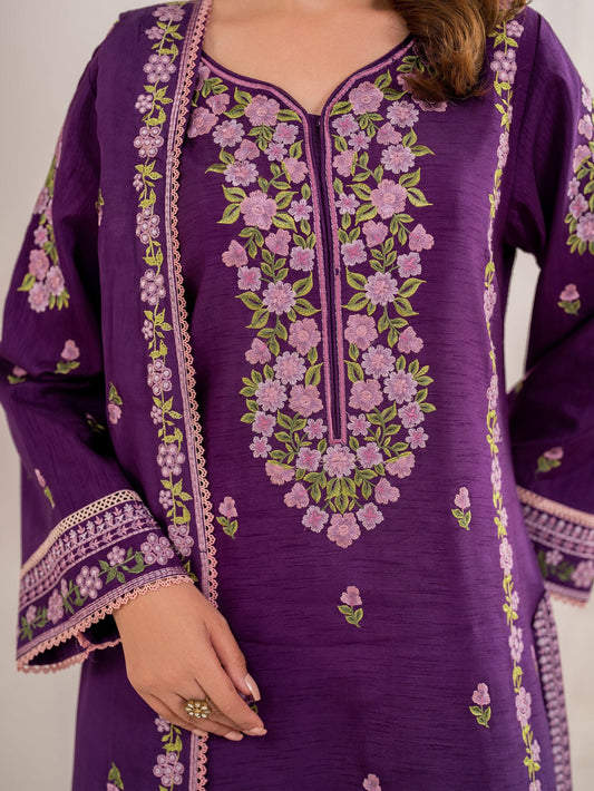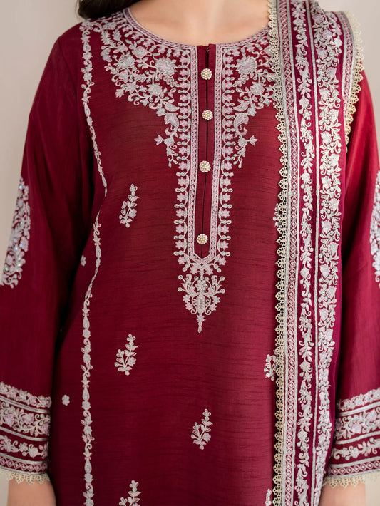 CRIMSON-3PC DHANAK EMBROIDERED SHIRT WITH CHIFFON EMBROIDERED DUPATTA & TROUSER-UR-4086
