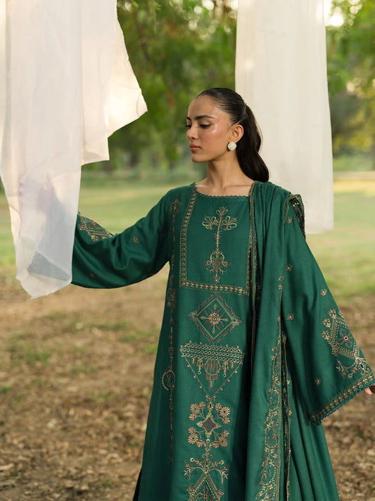 ASIM JOFA-3PC DHANAK EMBROIDERED SHIRT WITH DHANAK EMBROIDERED SHAWL AND EMB TROUSER-UR-4321