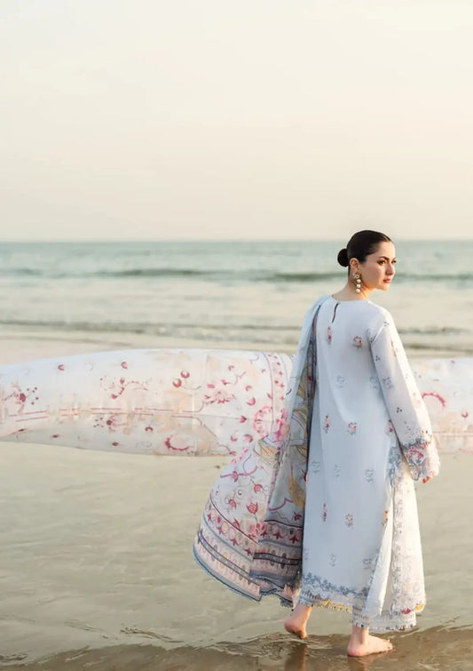 LAZULI-3PC LAWN EMBROIDERED SHIRT WITH CHIFFON EMBROIDERED DUPATTA AND TROUSER