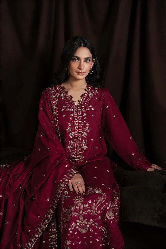 CRIMSON-3PC DHANAK EMBROIDERED SHIRT WITH CHIFFON EMBROIDERED DUPATTA & TROUSER-UR-4086