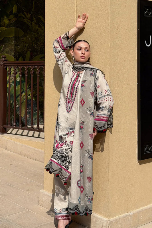 BAROQUE-3PC KHADDAR PRINTED EMB SHIRT WITH KHADDAR PRINTED EMB DUPATTA AND PRINTED TROUSER-UR-1732