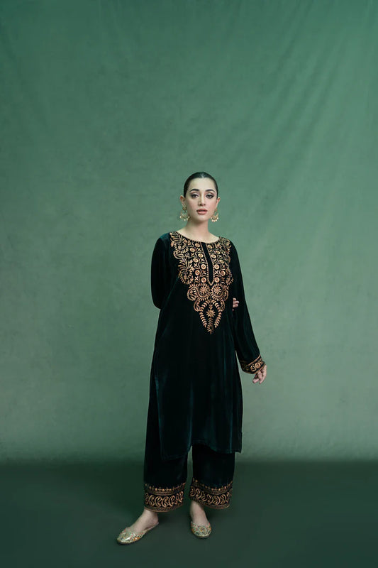 URGE - 2PC Velvet Heavy Embroidered Shirt With Velvet Heavy Embroidered Trouser-TBF-1912