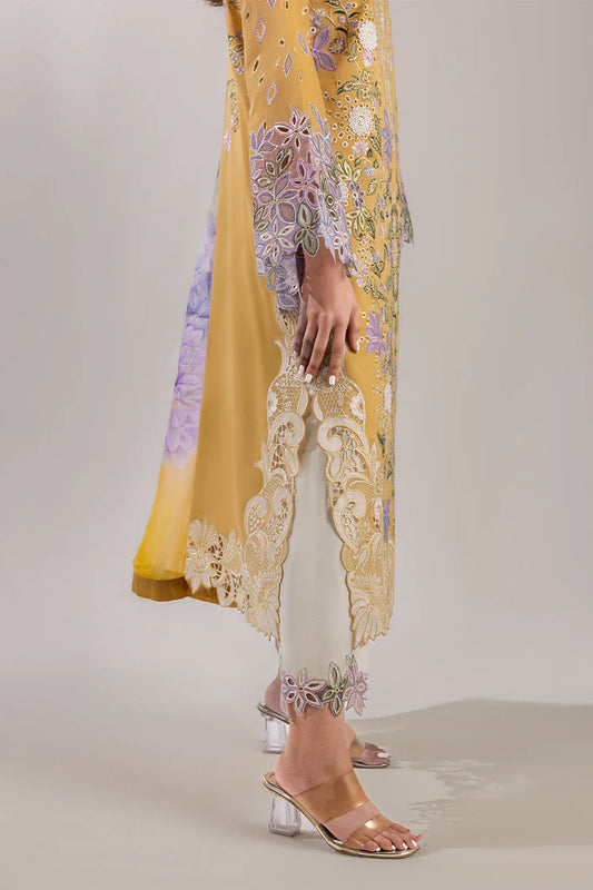 MARIA.B-3PC KARANDI EMBROIDERED SHIRT WITH COURTRAI PRINTED SHAWL AND TROUSER-UR-4062