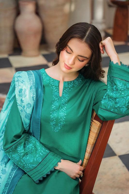 LAZULI- 3PC DHANAK EMBROIDERED SHIRT DHANAK EMBROIDERED DUPATTA AND TROUSER-TANA-1607