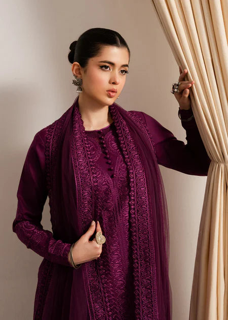 ASIM JOFA-3PC VELVET EMBROIDERED SHIRT WITH CHIFFON EMBROIDERED DUPATTA & TROUSER-UR- 5092