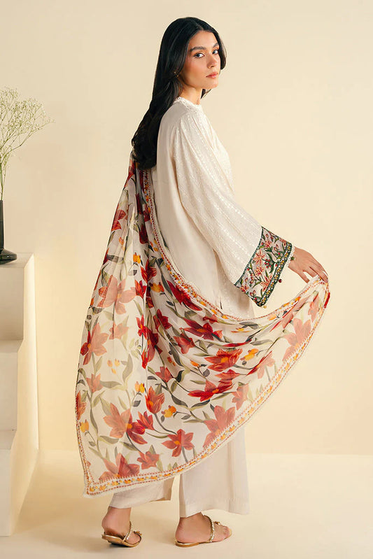 ASIM JOFA-3PC DHANAK EMBROIDERED SHIRT WITH COURTRAI PRINTED SHAWL & TROUSER -UR-4073