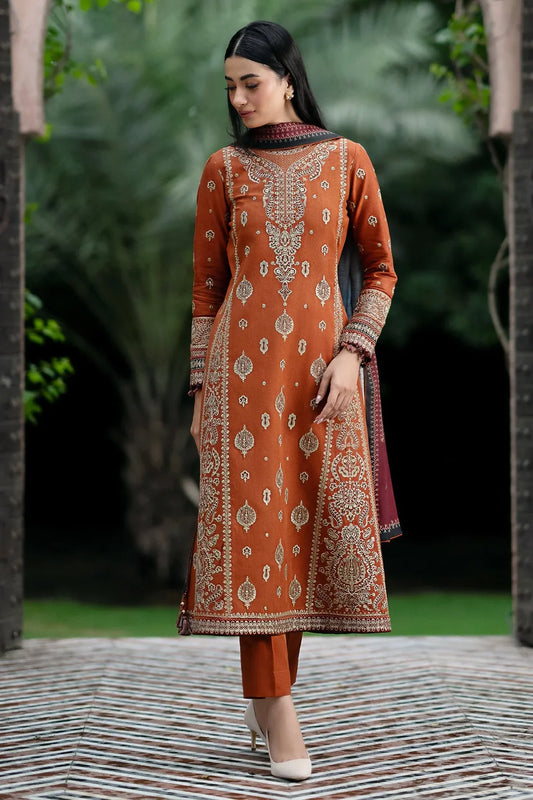 ZARA SHAHJAHAN- 3PC DHANAK EMBROIDERED SHIRT WITH WOOL PRINT SHAWL AND TROUSER-TBF-17560